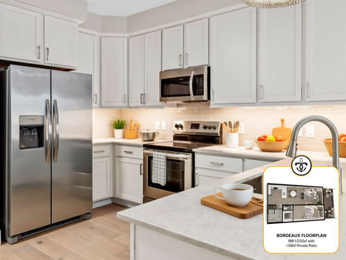 The Bordeaux Floor Plan at The Grand offers a perfect balance of space, sophistication, and smart design. With a well-proportioned layout that allows for distinct living, dining, and sleeping areas, Bordeaux feels expansive yet intentional. This residence features a professional-style kitchen, hardwood floors, spa-inspired bathroom, in-unit washer/dryer, and abundant natural light—delivering true luxury that lives well day to day.